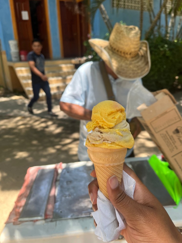 When life gives you tortillas, you put Oaxaca cheese on it. I’ve decided to count how many tortillas I’ll eat here in the next six months. So far, I’ve had cuarenta y ocho (48). Some deep fried, a couple made into chips, and a lot served on the side along with black beans and salsa. I don’t like the black beans in the states, but they’re pretty good here! So far, I’ve tried tlyudas, huarache, tortas, a taco with cow intestine, mahi mahi deep fried tacos, Chinese food, burgers, and several several dishes in the cafeteria that I honestly couldn’t tell you the name of. The mangos here are so good they could make you cry… or really sick if you don’t peel them properly. I witnessed that with my new friend who didn’t and ended up with her whole chin infected for a week. Fruit water, fresh juices, smoothies, and horchata are popular drinks here. As I explore more of Cacalote and the surrounding areas like Puerto Escondido and Rio Grande, I’m excited to try the different foods that are offered. I’m down to try most things except ants and grasshoppers.